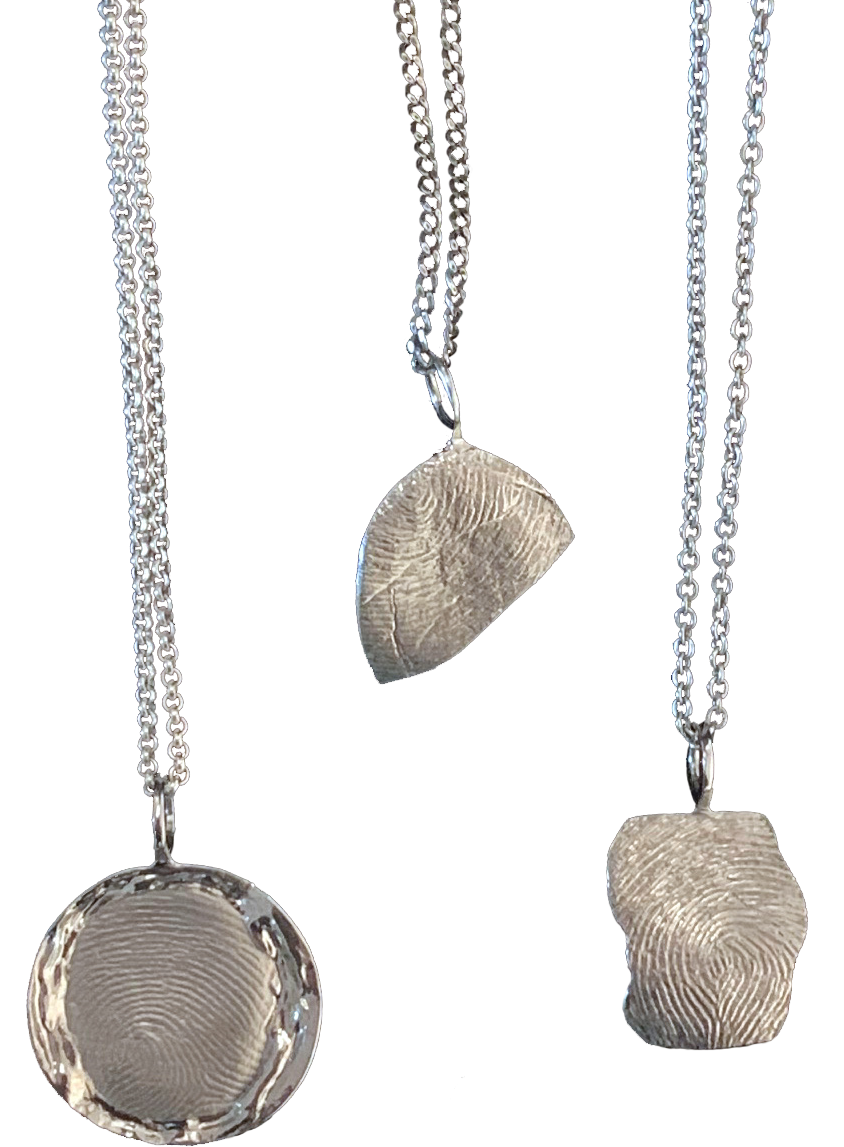 Jedes Schmuckstück ist ein Einzelstück, das wir aus deinem persönlichen Fingerabdruck fertigen – zu 100 % in Handarbeit, keine industrielle Fertigung. Somit gleicht kein Kettenanhänger bzw. Ring dem anderen.